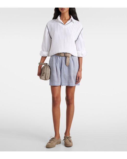 Materiale: 78% lino, 22% seta. Trattamento: lavaggio a secco. Made in Italy. Colore del designer: Bianco/Azzuro. Fascia elastica in vita. Lino.
