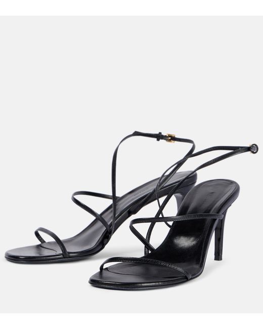 Upper: leather. Lining: leather. Sole: leather insole and sole. Toe shape: round open toe. Made in Italy. Includes: shoe box, dust bag. Designer color name: Black. Closure: buckle-fastening ankle strap.