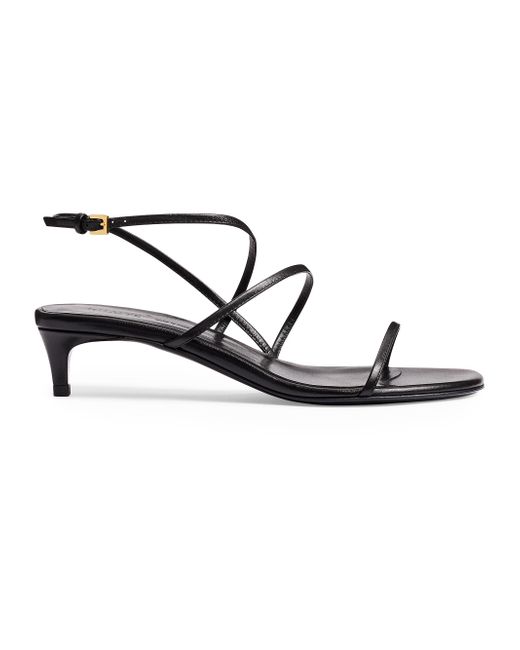 Khaite's Loop kitten-heel strappy sandals are crafted of leather in Italy. Open toe Buckle closure Leather upper Leather sole Made in Italy SIZE Kitten heel: about 1.4" (35mm). Women's Shoes - Advanced Women's Designe > Khaite > Saks Fifth Avenue > Barneys. Khaite. Color: Black. Size: 5.5.