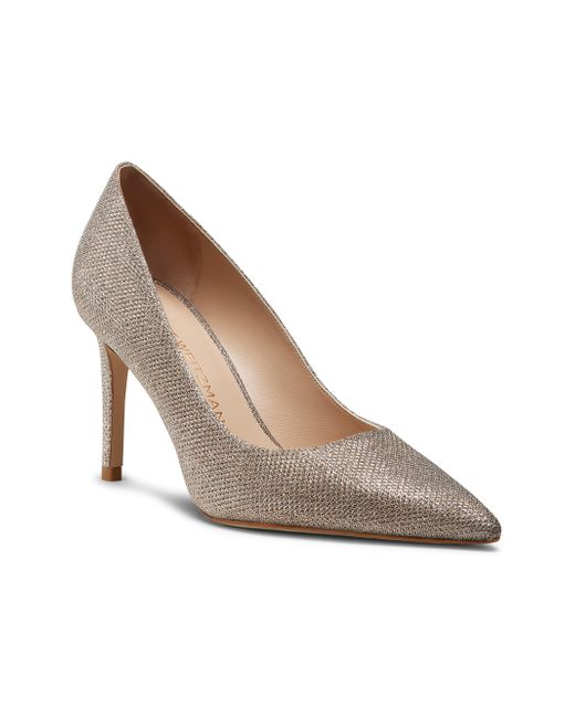 These Stuart Power pumps from Stuart Weitzman are designed with a pointed toe and an 85mm stiletto heel. Point toe Slips on Textile upper Leather lining Leather sole Made in Spain SIZE Stiletto heel: about 3.35" (85mm) ABOUT THE BRAND Designer Stuart Weitzman started his career designing for his father's shoe company, before launching his own brand in 1986. Known for his glamorous pumps and over-the-knee boots, Weitzman has also incorporated unique materials in his designs, ranging from Lucite and wallpaper to cork, vinyl and even gold. Today, the label continues to create classic, feminine silhouettes that balance both comfort and style. Women's Shoes - Stuart Weitzman Wmn Shoe > Stuart Weitzman > Saks Fifth Avenue > Barneys. Stuart Weitzman. Color: Poudre. Size: 10.