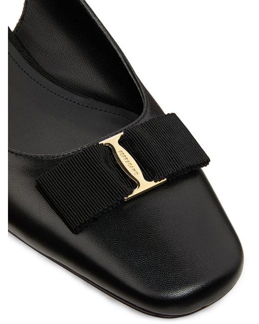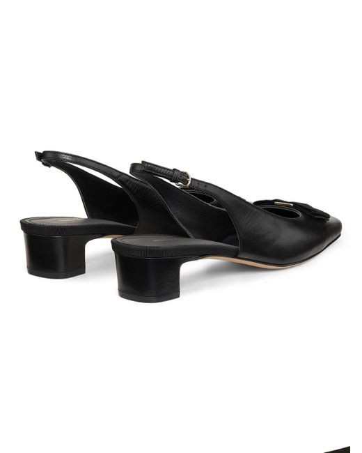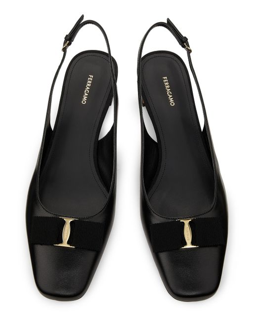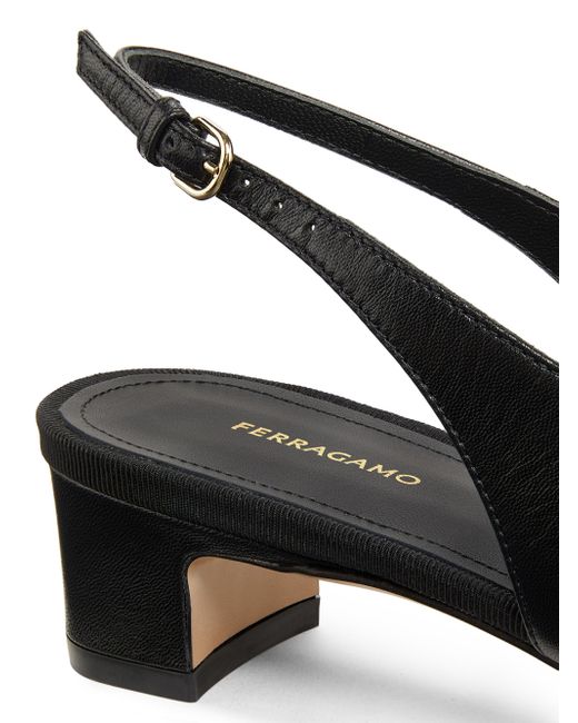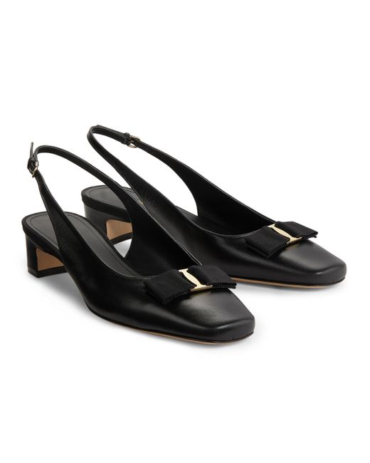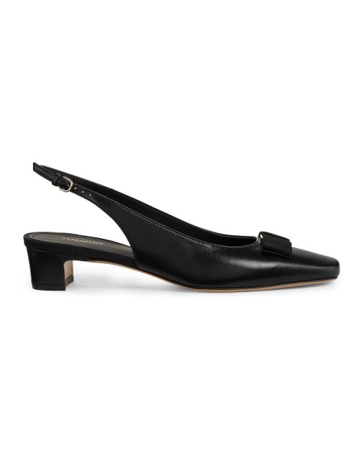 FERRAGAMO's Rivada slingback pumps are crafted of glossy patent leather in Italy. Square toe Buckle closure Patent leather upper Leather lining Leather sole Made in Italy SIZE Heel: about 1" (25mm) ABOUT THE BRAND Italian designer Salvatore Ferragamo began his journey in 1927 in Italy with a vision of creating the world's most beautiful shoes. Since its inception, Ferragamo has expanded to include clothing, accessories and beauty under the creative direction of Maximilian Davis-who brings a minimalist-meets-maximalist aesthetic to the brand. Women's Shoes - Ferragamo Womens Shoes > Ferragamo > Saks Fifth Avenue > Barneys. FERRAGAMO. Color: Nero. Size: 5.