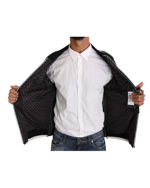 Dolce & Gabbana Absolutely stunning, 100% Authentic, brand new with tags Dolce & Gabbana Jacket. Model: Bomber Jacket Color: Black with striped pattern Sequined and beaded appliques Full zipper closure Two front pockets and two inside pockets Logo details Great fitting and comfort Made in Italy Material: 88% Cotton, 10% Silk, 2% Elastan Lining: 100% Polyester