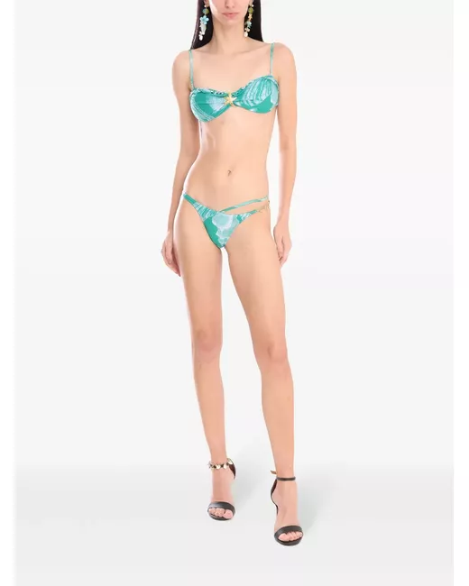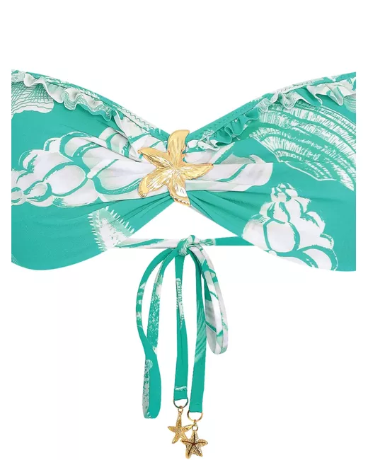 turquoise blue-green rear tie fastening bustier-style neckline classic bottoms Be mindful to try on swimwear over your own garments.