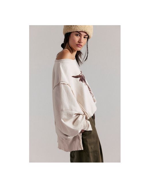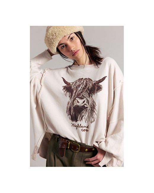 Just as cool as it is classic, this goes-with-anything long sleeve tee is featured in a slouchy, relaxed fit with worn, varsity-inspired number graphic at front for a true lived-in look. **Fit:** Slouchy, relaxed fit **Features:** Scoop neckline, dropped shoulders, side slits at bottom, ribbed hems, defined seaming **Why We We The Free Graphic Camden Pullover at Free People in Highland Cow Combo, Size: Medium