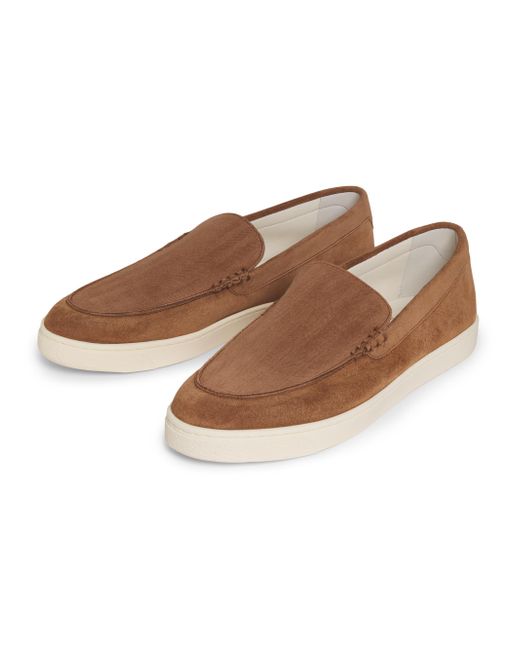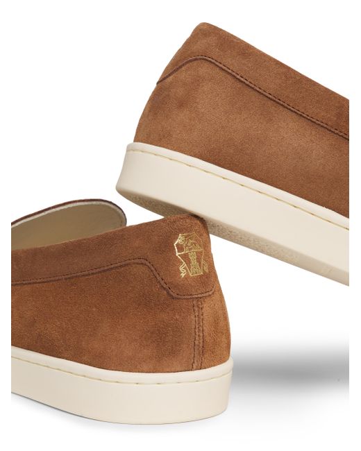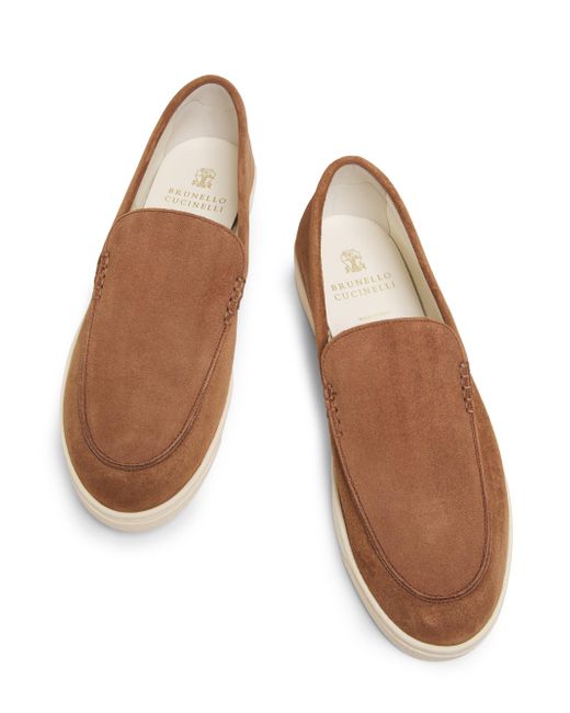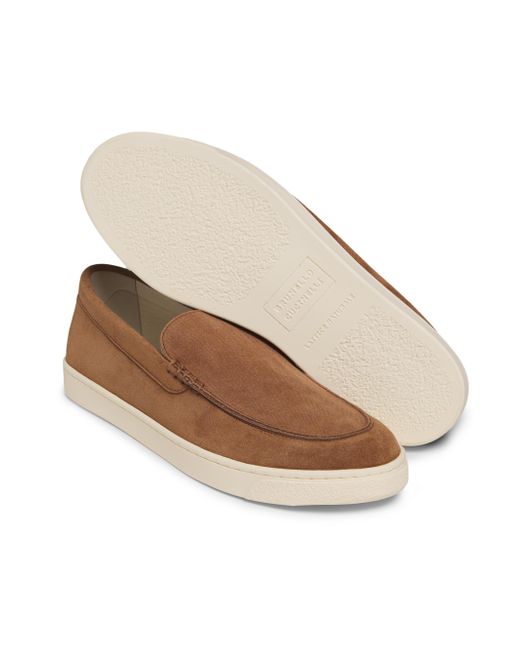 Brunello Cucinelli's loafers are crafted of suede with textured, tonal stripe detailing. This pair is finished with a rubber sole for added traction and durability. Round toe Slips on Suede upper Leather lining Rubber sole Made in Italy ABOUT THE BRAND Beginning with a focus in masterfully constructed cashmere pieces, Brunello Cucinelli's namesake heritage label quickly grew to be synonymous with fine Italian craftsmanship and casual luxury. Every piece-from knitwear to suiting to accessories-is made in Cucinelli's Solomeo studio, located in a 14th-century Italian village. Men's Shoes - Mens Classic Footwear > Brunello Cucinelli > Saks Fifth Avenue > Barneys. Brunello Cucinelli. Color: Brown. Size: 7.