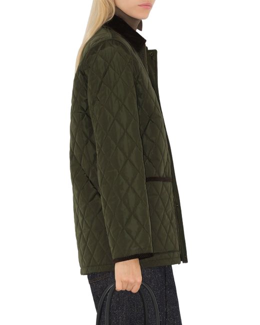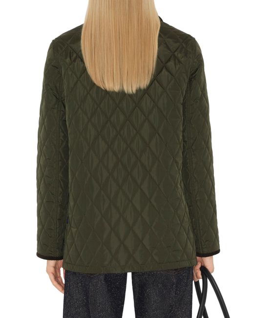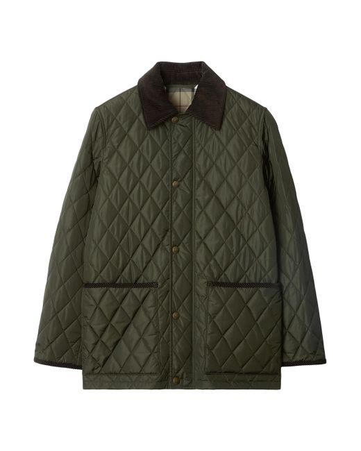 Finished in diamond quilts, Burberry's jacket showcases a spread collar and front patch pockets. This piece features a spread collar and front patch pockets with bonded trim. Spread collar Long sleeves Front patch pockets Button-front closure 100% polyamide Lining: 100% cotton Trim: 100% cotton Dry clean Imported SIZE & FIT About 28.75" from shoulder to hem Model measurements: 5'10" tall Model is wearing a US size Small ABOUT THE BRAND Founded in 1856 by 21-year-old Thomas Burberry, the brand set out with a mission to stylishly protect against British weather-and Burberry's iconic trench coat was born. In the 1920s, its renowned check pattern was introduced as the coat's lining. Today, under Creative Director Daniel Lee, the heritage brand continues to evolve and create timelessly classic men's, women's and kids' pieces, along with beauty. Advanced Designer - Burberry > Burberry > Saks Fifth Avenue > Barneys. Burberry. Color: Shale. Size: Medium.