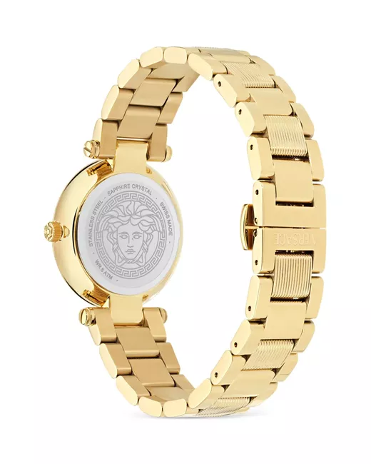 35mm gold-tone stainless steel round face signature Greca detailing sword hands stainless steel link bracelet folding clasp quartz movement