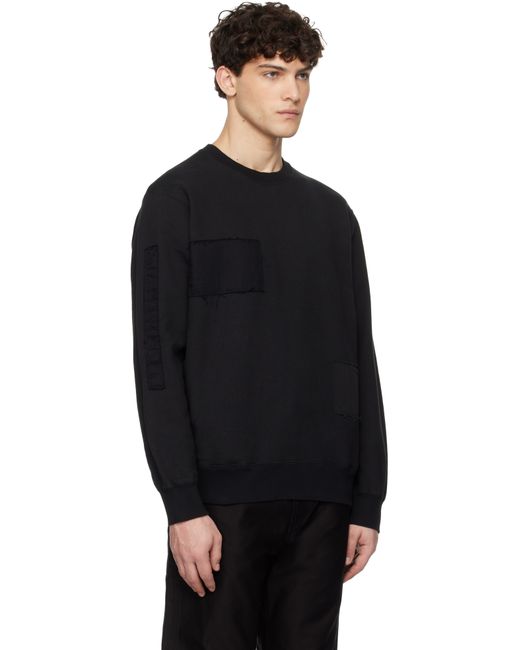 French terry sweatshirt. Frayed twill patches throughout. · Rib-knit crewneck, hem, and cuffs · Seam pockets at waist Supplier color: Black