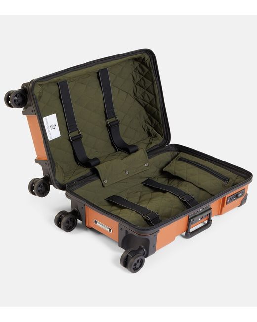 Materiale: plastica (riciclata). Rivestimento: tessuto. Made in UK. Colore del designer: Copper. Inserto: alluminio. Colore del metallo: nero, argento. Chiusura: cerniera superiore a doppio cursore, lucchetto integrato TSA a 3 cifre. Manico telescopico regolabile, Manico. Interno: due scomparti.