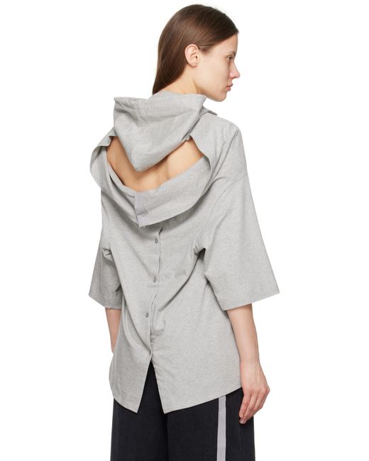 Cotton jersey hoodie. · Drawstring at hood · Logo embroidered at chest · Dropped shoulders · Cutout at back · Button closure at back · Self-tie straps Supplier color: Gray