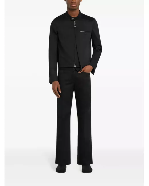 black two-way zip fastening zip-fastening chest pocket embroidered logo at the chest band collar