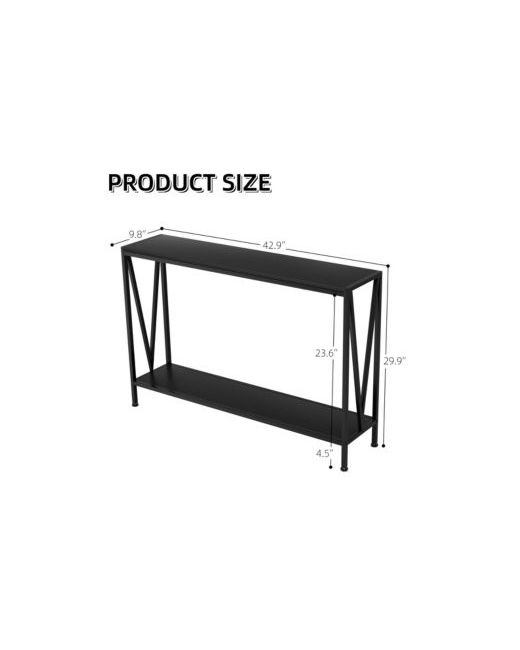 Side Table Entryway Table 2-Tier Console Table with Storage Narrow Sofa Table with V Design 43" Industrial Console Table for Hallway Entryway Living Room Foyer Corridor Office