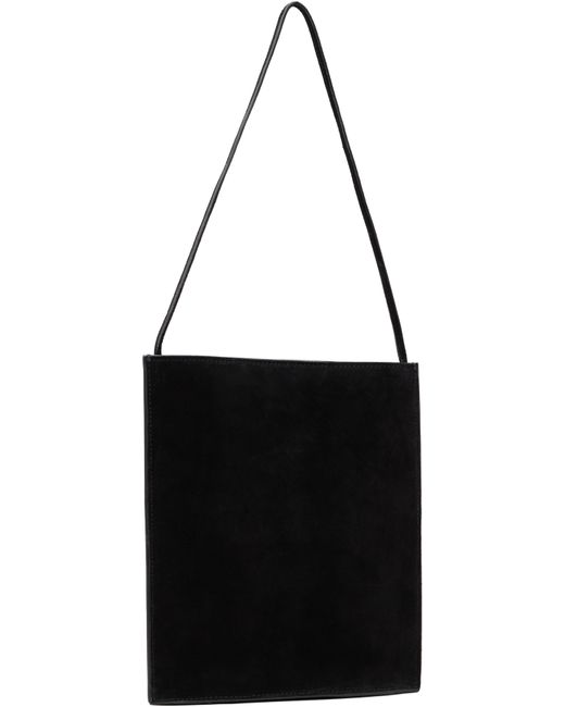 Calfskin suede shoulder bag in black. · Fixed shoulder strap · Logo stamp at face · Magnetic closure · Suede lining · H9 x W8.25 x D1.75 Supplier color: Black