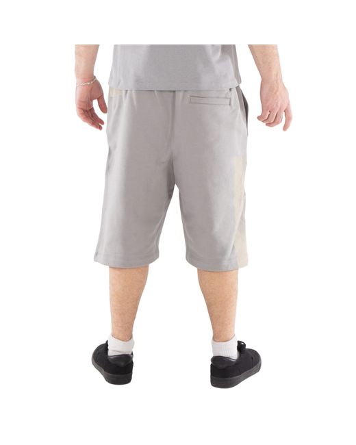 A Cold Wall Mens Bottoms. Fashion category: Shorts. SKU: ACWMB282-CEMENT. Color: Beige. A Cold Wall Strand Cotton Shorts. A pair of Strand cotton shorts featuring a two-tone design with an abstract pattern print. They have an elasticated drawstring waistband, two side slit pockets, a logo plaque, a rear welt pocket, and a below-knee length. Cotton 100%