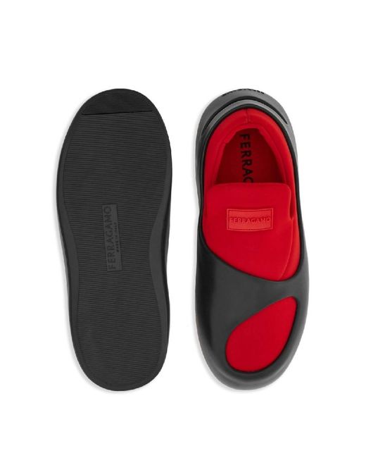 Ferragamo Mens Sneakers. SKU: 021271 766299. Color: Red. Ferragamo Logo-Patch Panelled Sneakers. These sneakers feature a rubber shell, slip-on style, branded insole, applique logo, round toe, and a flat rubber sole. Composition: Rubber 60%, Fabric 40%. Made in Italy. Please visit the brand website for sizing information.