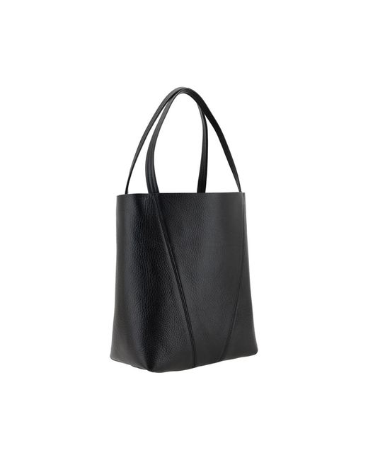 Leather Spin Shoulder Bag by Chloé is a refined and modern accessory featuring a sleek grained leather design. The two flat top handles offer a comfortable and practical grip, while the brand’s iconic monogram, press-stamped on the front, adds a distinctive touch of luxury. The closure of the bag is made via a ring that holds the two handles together, an element that gives it a unique and functional look. A fascinating detail is the chain with a pendant bearing the iconic logo applied to the handle. The interior of the bag consists of a single compartment.
