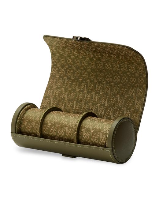 From the Earth Collection. The Earth Triple Watch Roll from Wolf Designs has a faux leather exterior with a metallic closure. Inside, find a satin jacquard interior featuring the Wolf signature design which offers storage for up to three watches. Two watch guards positioned between the watches prevent scratching during travel and the hidden capsule with three compartments is perfect for cufflinks, rings, and other small accessories. Suitable for three watches Hidden jewelry capsule with three compartments Two watch guards Faux leather Wipe clean Imported SPECIFICATIONS About 7.75"L x 3.5"W x 3.25"H. Home - Frames And Leather Acces > Wolf > Saks Fifth Avenue > Barneys. Wolf. Color: Olive.
