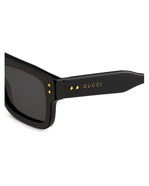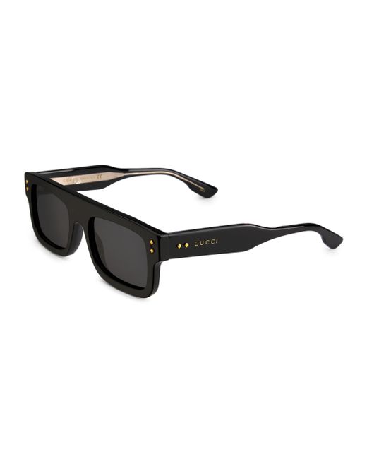 From the Gucci Logo Collection. A flat silhouette modernizes these rectangular sunglasses, featuring logo detailing along the temple. 100% UV protection Grey lenses Case and cleaning cloth included Acetate Made in Italy SIZE 53mm lens width 21mm bridge width 145mm temple length ABOUT THE BRAND First launched in 1921 the Italian luxury fashion house quickly became known for its fine leather craftsmanship and accessories. Today, the visionary brand continues to redefine fashion trends, while celebrating creativity and innovation. Gucci's contemporary designs include shoes, clothing and accessories-often boasting the iconic horsebit motif. Soft Accessories - Men Sunglasses > Gucci > Saks Fifth Avenue > Barneys. Gucci. Color: Black.