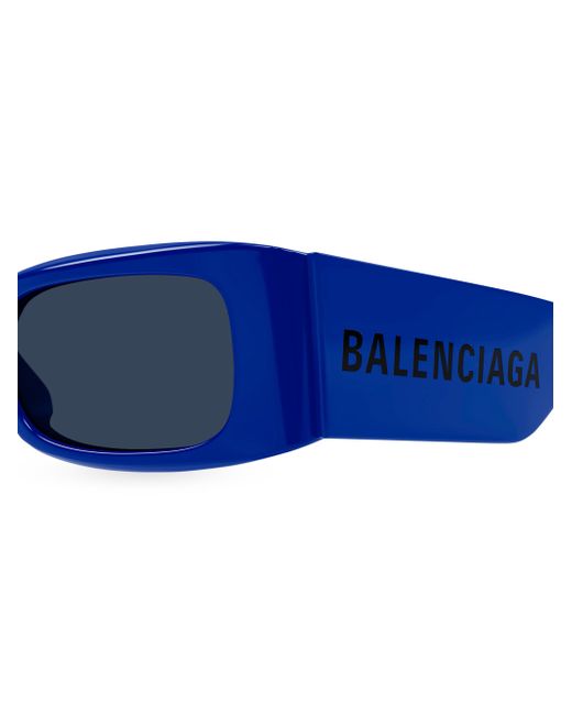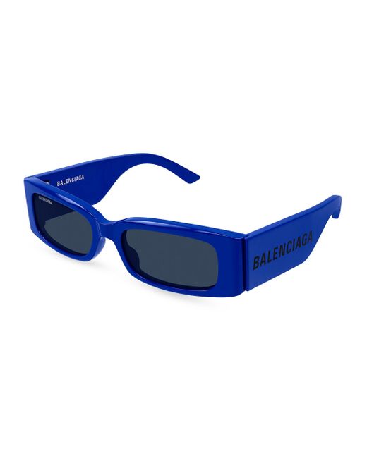 From the Max Collection. Balenciaga's iconic Max sunglasses are updated with thick rectangular frames. Logo branding along the temple adds contrast to this acetate pair. 100% UV protection Solid lenses Includes case and cleaning cloth Recycled acetate Made in Italy SIZE 56mm lens width 18mm bridge width 140mm temple length ABOUT THE BRAND Founded in Spain in 1919 by Cristóbal Balenciaga, the iconic couture house is known for pushing boundaries with sculptural shapes and modern fabrications. Now based in Paris with Creative Director Demna Gvasalia at the helm, the brand continues to create meticulously tailored ready-to-wear, and innovative handbag, shoes and accessories. Soft Accessories - Men Sunglasses > Balenciaga > Saks Fifth Avenue > Barneys. Balenciaga. Color: Blue.