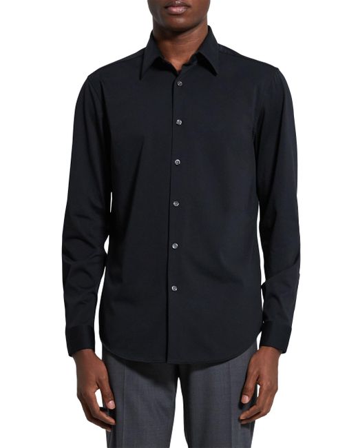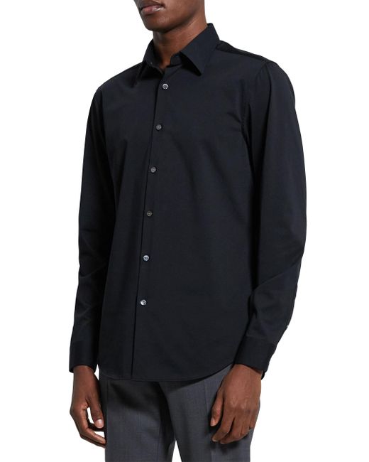 The Sylvain shirt from Theory is crafted of a cotton blend and tailored with a point collar and barrel button cuffs for a clean-cut silhouette. Point collar Long sleeves, barrel button cuffs Shirttail hem Button-front closure Cotton/polyester Dry clean Imported SIZE About 31" from shoulder to hem ABOUT THE BRAND For two decades, Theory has nailed the art of polished dressing through its well-tailored pieces. Innovative fabrications and an elevated, minimalist aesthetic make the brand's separates a wardrobe main story season after season. Mens Modern Coll & Outer - Theory > Theory > Saks Fifth Avenue > Barneys. Theory. Color: Black. Size: XS.