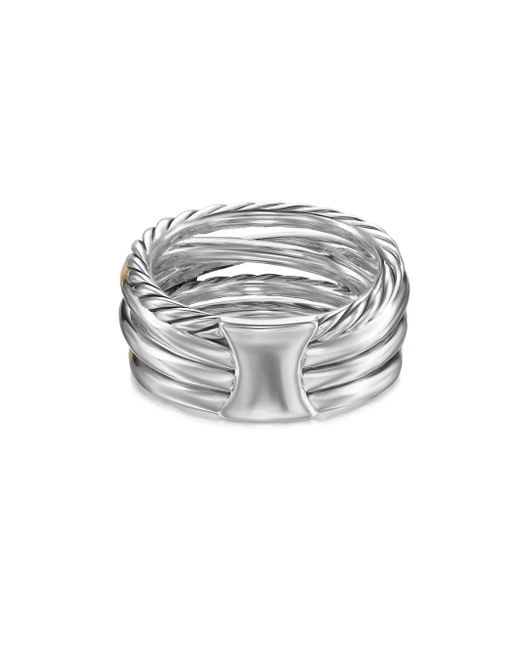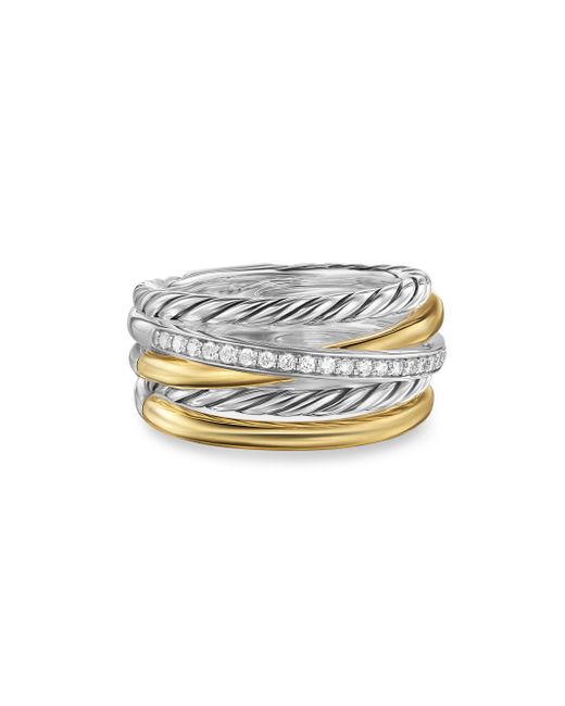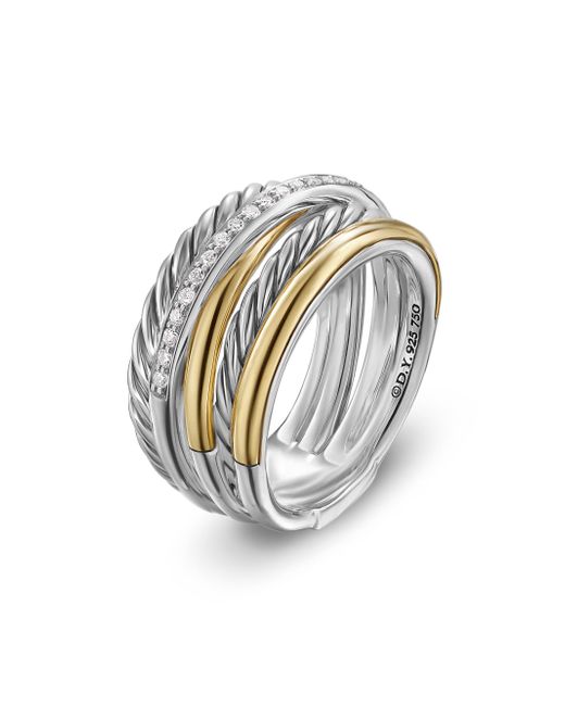 The David Yurman Crossover Collection explores the rhythmic weaving of line to create form and movement. Using a dynamic range of smooth and cabled cords, the individual strands are meticulously entwined. Sterling silver with 18-karat yellow gold Pavé-set diamonds, total carat weight range from 0.14 to 0.16 (dependent on size) Ring, 11mm Imported ABOUT THE BRAND David, a sculptor, and his wife, Sybil, a painter, launched their innovative jewelry brand in 1980 in New York City. Since then, the American design house has pioneered cutting-edge collections - from its iconic combination of sterling silver and diamonds to signature pinky rings. Today, with their son Evan, the Yurmans continue to deliver timeless pieces inspired by nature, art, ancient symbols and Manhattan's stunning architecture. Lsd Jewelry - David Yurman > David Yurman > Saks Fifth Avenue > Barneys. David Yurman. Color: Diamond. Size: 8.