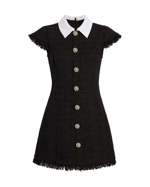 Crafted of tweed, LIKELY's cap-sleeve Riello minidress features a contrast, layered point collar and playful fringe trim. Point collar Cap sleeves Mock button-front closures Fringe trim Concealed back-zip closure 90% polyester/10% wool Lining: 100% polyester Dry clean Imported SIZE & FIT About 33" from shoulder to hem Model measurements: 5'10" tall Model is wearing a US size 4 This brand fits slightly smaller. Consider ordering a size up. Dress Collections - Contemporary Evening > Likely > Saks Fifth Avenue > Barneys. Likely. Color: Black. Size: 4.