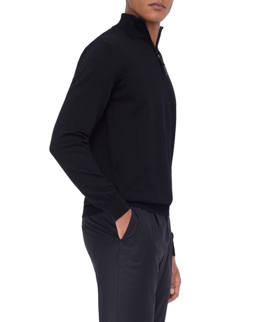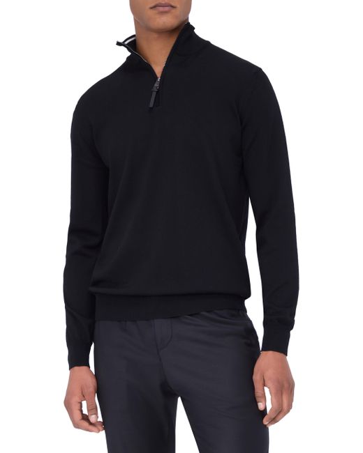 The Spencer half-zip sweater by Bugatchi is crafted of merino wool featuring a ribbed collar, cuffs, and hem. Mockneck Long sleeves Zip-front placket 100% merino wool Dry clean Made in Italy SIZE & FIT Model measurements: 6'2" tall, 40" chest Model is wearing a US size Medium. Mens Modern Coll & Outer - Contemp Classic Collecti > Bugatchi > Saks Fifth Avenue > Barneys. Bugatchi. Color: Black. Size: Small.