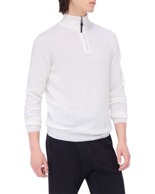 The Spencer half-zip sweater by Bugatchi is crafted of merino wool featuring a ribbed collar, cuffs, and hem. Mockneck Long sleeves Zip-front placket 100% merino wool Dry clean Made in Italy SIZE & FIT Model measurements: 6'2" tall, 40" chest Model is wearing a US size Medium. Mens Modern Coll & Outer - Contemp Classic Collecti > Bugatchi > Saks Fifth Avenue > Barneys. Bugatchi. Color: Chalk. Size: Small.