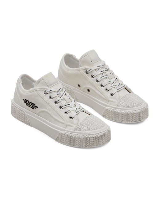 These Marc Jacobs The Ssneaker is crafted of canvas with a rubber solefor added comfort. Round toe Lace-up style Canvas upper Rubber sole Imported SIZE Platform: about 1.2" (30mm). Women's Shoes - Workshop Shoes > Marc Jacobs > Saks Fifth Avenue > Barneys. Marc Jacobs. Color: White. Size: 5.