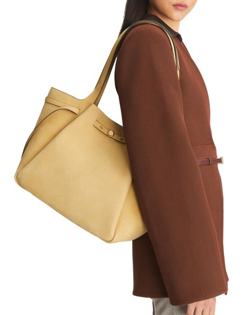 From the Romy Collection. This Tory Burch tote bag is crafted of soft pebbled leather and styled with a gently gathered silhouette. Two shoulder straps Interior: one zip pocket Magnetic closure Leather Imported SIZE About 12.4"W x 11.6"H x 6.7"D Handle drop: about 12" ABOUT THE BRAND Since debuting her brand in 2004, New York-based designer Tory Burch has made an impact on the fashion world with her handbags and shoes, and playful-yet-polished clothing. Today, Burch remains inspired by color and travel, with her vibrant collections bursting with prints, and her instantly recognizable double-T logo drawing from Moroccan architecture. Handbags - Tory Burch Handbags > Tory Burch > Saks Fifth Avenue > Barneys. Tory Burch. Color: Wheat.