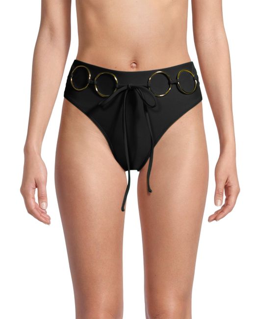 Decorated with O-rings, Ramy Brook's Kimber bikini bottom showcases a moderate design. Elasticized waistband Moderate coverage Pulls on 82% nylon/18% spandex Lining: 92% polyester/8% spandex Hand wash Imported SIZE & FIT Model measurements: 5'10" tall Model is wearing a US size Small Please note: Bikini top sold separately. Outerwear And Swimwear - Contemporary Swim > Ramy Brook > Saks Fifth Avenue > Barneys. Ramy Brook. Color: Black. Size: XS.