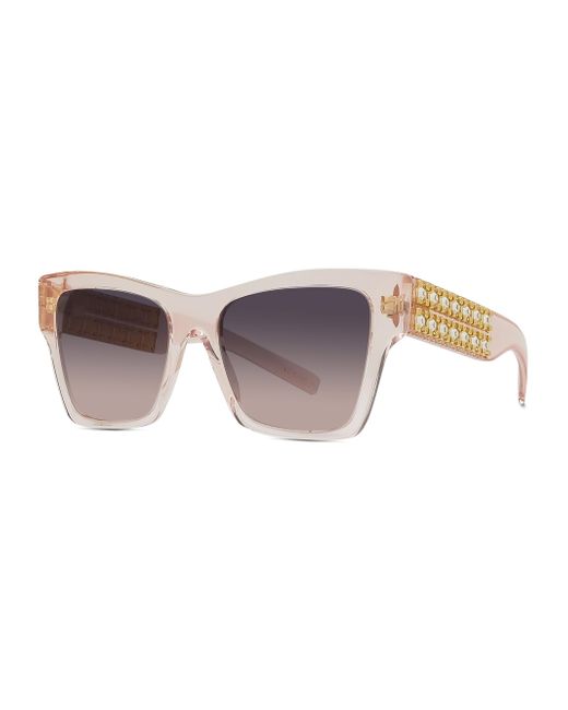 Givenchy's sunglasses feature a square silhouette gradient lenses. The temples are adorned with 14 strass crystals and the label's signature on both end-tips. Gradient lenses Acetate Made in Italy SIZE 54mm lens width 18mm bridge width 145mm temple length. Soft Accessories - Sunglasses > Givenchy > Saks Fifth Avenue > Barneys. Givenchy. Color: Transparent Pink Gradient.