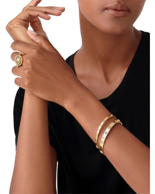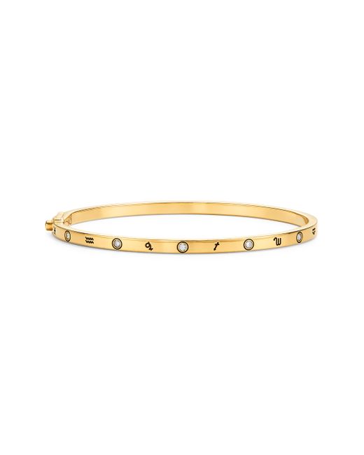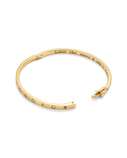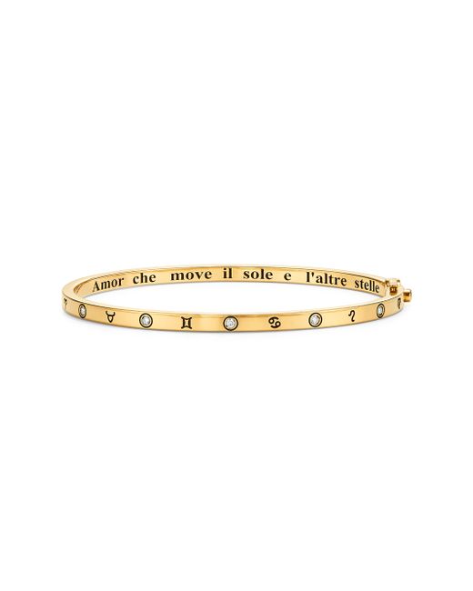 From the Celestial Collection. Made of 18K yellow gold engraved with zodiac symbols and embellished with sparkling white diamonds, this whimsical bangle is detailed with "Amor che move il sole e l'altre stelle" lettering at the interior, an Italian phrase that translates to "Love that moves the sun and other stars." Diamonds, 0.177 tcw 18K Yellow Gold Hinged clasp Made in Italy SIZE Diameter, about 2.21". Fine Jewelry - Temple St Clair > Temple St. Clair > Saks Fifth Avenue > Barneys. Temple St. Clair. Color: Yellow Gold.