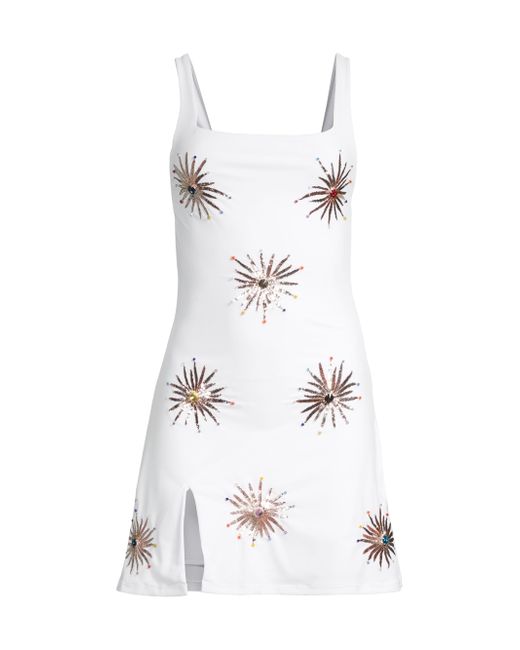 The sleeveless Callie minidress by Oceanus glistens with stardust-inspired sequined detailing at the front and is finished with contrast crystal accents. Plunging square neck and square back Sleeveless Side slit Concealed side zip closure 85% polyamide/15% Lycra spandex Dry clean Made in UK SIZE & FIT About 32.5" from topline to hem Model measurements: 5'11" tall Model is wearing a US size Small. Outerwear And Swimwear - Contemporary Swim > Oceanus > Saks Fifth Avenue > Barneys. Oceanus. Color: White. Size: XS.