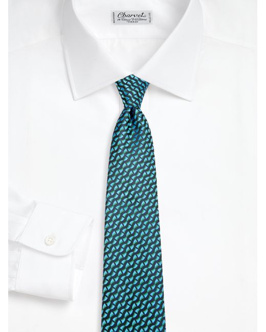 A geometric sharkstooth design details this Charvet tie, crafted of smooth silk for an elevated look. 100% silk Dry clean Made in France SIZE About 3.3"W. Men Luxury Coll - Charvet > Charvet > Saks Fifth Avenue > Barneys. Charvet. Color: Blue Green.