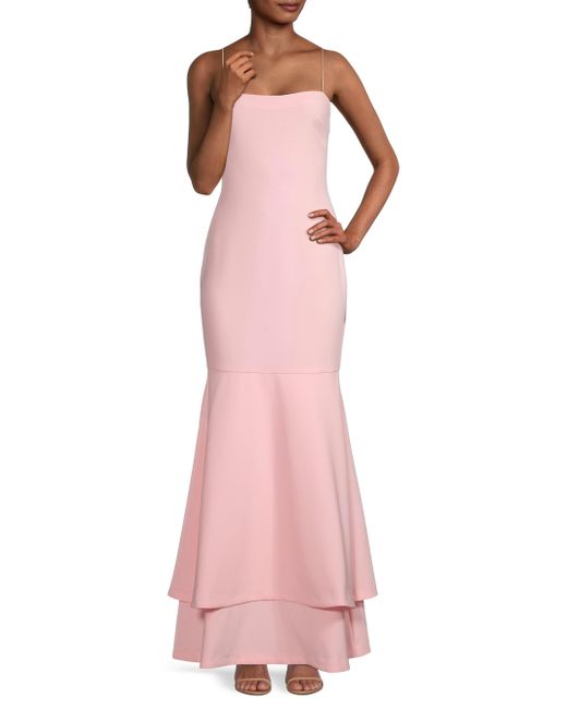 Form-fitting stretch gown with tiered hem Straight neckline Sleeveless Concealed back zip closure About 64" from shoulder to hem Polyester/rayon/spandex Dry clean Imported Model shown is 5'10" (177cm) wearing US size 4. For basic alterations and hemming, book an appointment online at your local Saks Fifth Avenue location. This brand fits slightly smaller. Consider ordering a size up. Dress Collections - Contemporary Evening > Likely > Saks Fifth Avenue > Barneys. Likely. Color: Roseshadow. Size: 0.