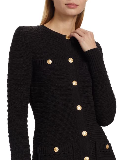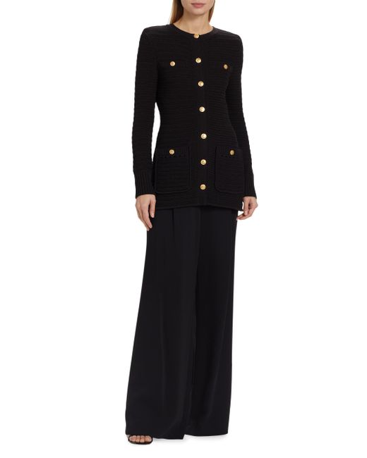 Rendered in a knit construction, Toccin's Constance jacket features elegant goldtone buttons and a longline silhouette. Round neck Long sleeves Chest pockets Waist patch pockets 100% cotton Dry clean Imported SIZE & FIT About 27" from shoulder to hem Model measurements: 5'10" tall Model is wearing a US size Small. Modern Collections - Branded Separates > Toccin > Saks Fifth Avenue > Barneys. Toccin. Color: Jet. Size: XS.