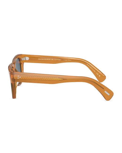 Oliver Peoples' Birell sunglasses feature pillow-shaped rectangular frames, solid lenses, and a three-dot design at the temples. Solid lenses Acetate Made in Italy SIZE 52mm lens width 18mm bridge width 145mm temple length. Soft Accessories - Men Sunglasses > Oliver Peoples > Saks Fifth Avenue > Barneys. Oliver Peoples. Color: Amber.