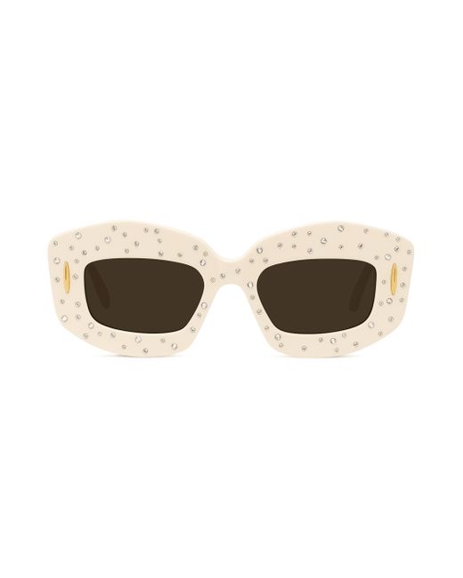 From the Anagram Collection. The Anagram Starry Night rectangular sunglasses from LOEWE are adorned with sparkling Swarovski crystals and feature solid lenses. Solid lenses Swarovski crystals Includes case and cleaning cloth Acetate Made in Italy SIZE 49mm lens width 19mm bridge width 140mm temple length. Soft Accessories - Men Sunglasses > Loewe > Saks Fifth Avenue > Barneys. LOEWE. Color: Shiny Ivory Smoke.