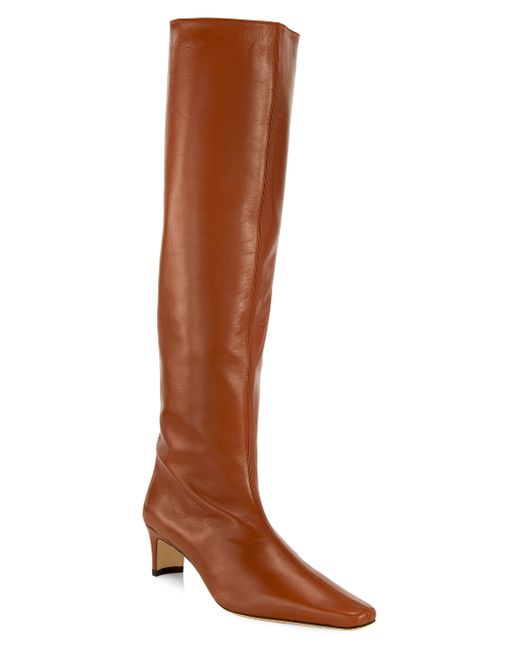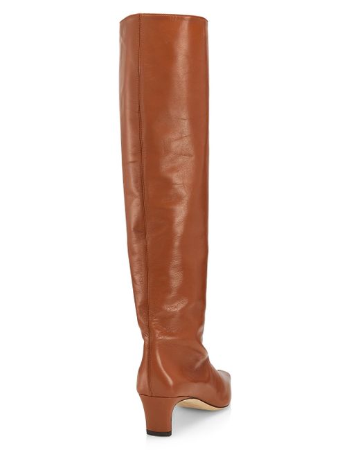 Made in Portugal, STAUD's Wally knee-high boots are crafted of rich leather. This style reveals a scrunched lower shaft, central front, backstitching, and a slim block heel. Leather upper Elongated square toe Pull-on Leather/ABS sole Made in Portugal SIZE Self-covered slim block heel, 2.16" (55mm) This brand fits slightly smaller. Consider ordering half a size up. Women's Shoes - Workshop Shoes > Staud > Saks Fifth Avenue > Barneys. Staud. Color: Tan. Size: 5.5.