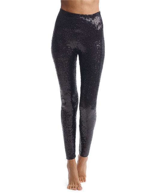 Put on your party pants! These sequin leggings are made with this brand's signature internal waistband and a flattering high-rise. Elasticized waist Pull-on styling Polyester/elastane Waistband: Nylon/elastane Lining: Nylon/elastane Hand wash Made in USA SIZE & FIT Inseam, about 30" Model shown is 5'10" (177cm) wearing US size Small. Lingerie - Contemporary Collections > Commando > Saks Fifth Avenue > Barneys. Commando. Color: Black. Size: XS.