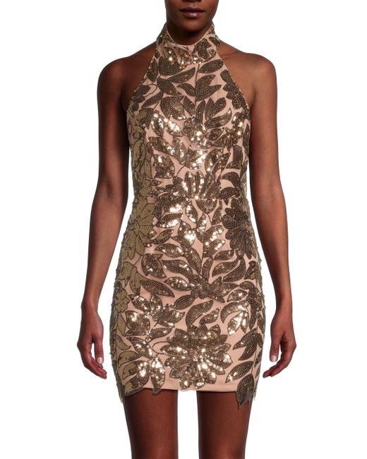 ONLY AT SAKS. Finished in shimmering sequins, Milly's Olivia minidress flaunts a whimsical leafy motif. This sleek style features a mock turtleneck and fitted silhouette. Mock turtleneck Sleeveless Hidden back zip closure, hook-and-eye Nape snap closure 100% nylon Face: 100% polyethylene terephthalate Lining: 97% polyester/3% spandex Dry clean Imported SIZE & FIT About 30" from topline to hem Model measurements: 5'10" tall Model is wearing a US size 4. Modern Collections - Milly > Milly > Saks Fifth Avenue > Barneys. Milly. Color: Gold Sequins. Size: 0.