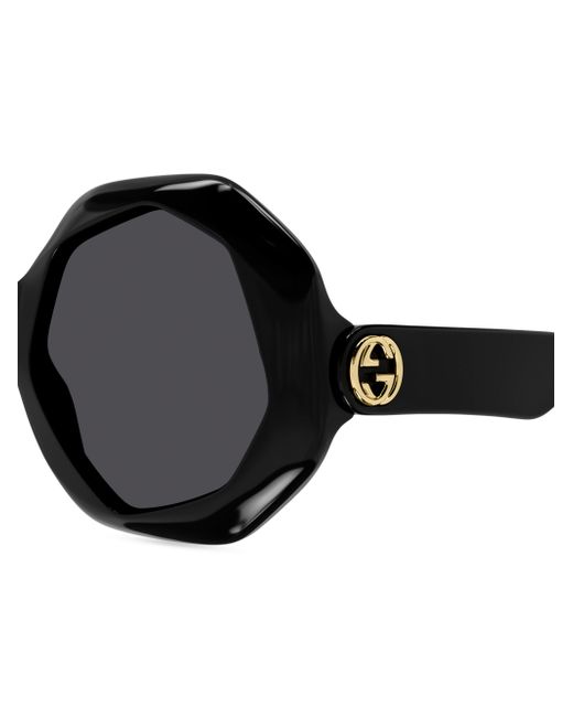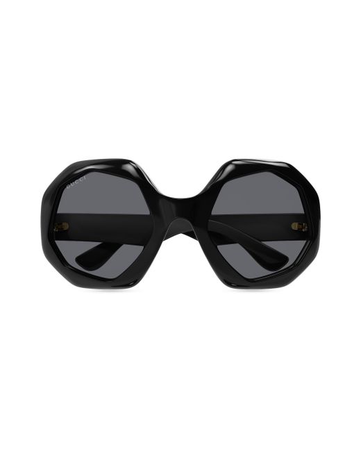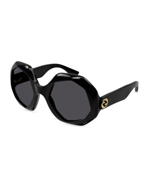From the Faceted Web Collection. The sunglasses from Gucci feature distinctive geometric, faceted frames, solid UV-protective lenses, and logo branding at the temples. 100% UV protection Solid lenses Logo and ribbon detail Acetate Made in Italy SIZE 57mm lens width 24mm bridge width 135mm temple length ABOUT THE BRAND First launched in 1921, the Italian luxury fashion house quickly became known for its fine leather craftsmanship and accessories. Today, the visionary brand continues to redefine fashion trends, while celebrating creativity and innovation. Gucci's contemporary designs include shoes, clothing and accessories-often boasting the distinctive Horsebit motif. Soft Accessories - Sunglasses > Gucci > Saks Fifth Avenue > Barneys. Gucci. Color: Black Dark Grey.
