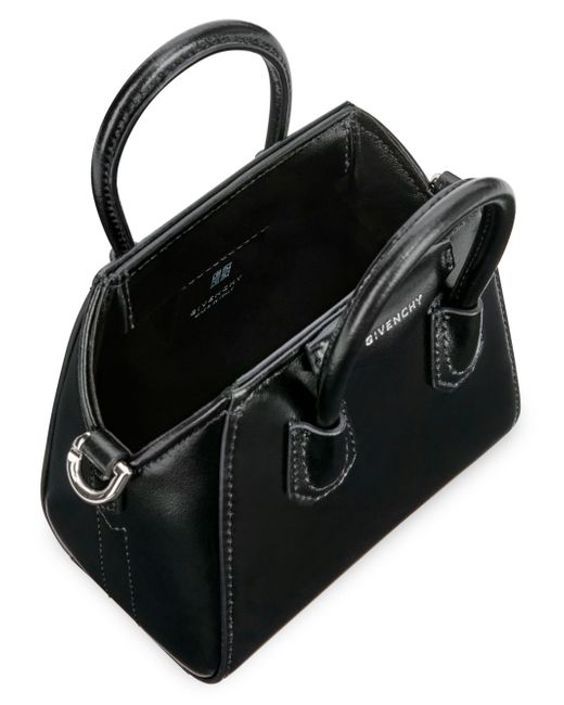 Micro Antigona bag in box leather. Handbag in smooth box calfskin leather Antigona line Magnetic closure Pentagonal patch with debossed silver Givenchy signature on the front Adjustable and removable leather shoulder strap Silver-finish metal details 100% calfskin leather Lining: 100% lambskin leather Metal pieces: 100% zamak Dimensions: 5.9 in x 4.3 in x 3 in Made in Italy. Lsd Handbags - Givenchy > Givenchy > Saks Fifth Avenue > Barneys. Givenchy. Color: Black.