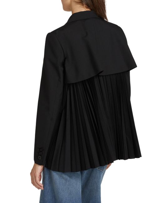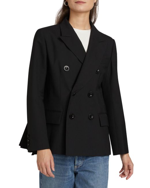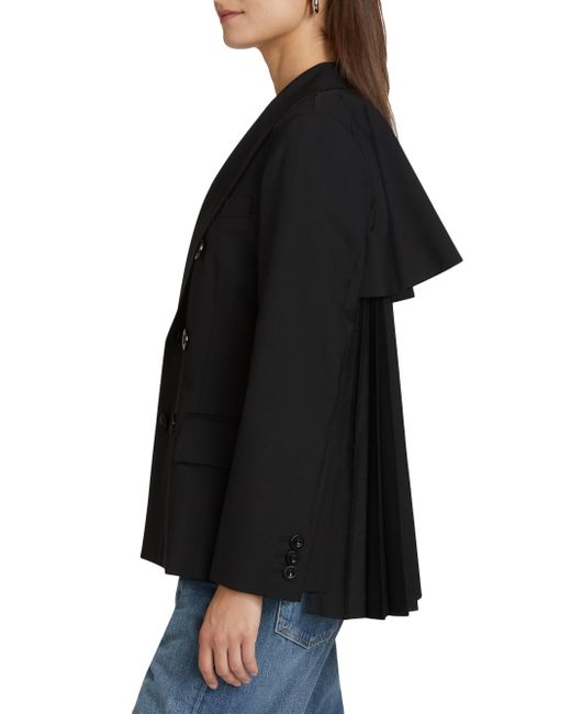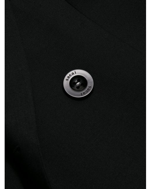 Crafted of a wool blend, Sacai's double-breasted jacket showcases notch lapels, a chest welt pocket, and front flap pockets. Notch lapels Long sleeves Chest welt pocket Front flap pockets Double-breasted button-front closure 70% polyester/30% wool Dry clean Made in Japan SIZE & FIT Model measurements: 5'10" tall Model is wearing a US size 4. Advanced Designer - Sacai > Sacai > Saks Fifth Avenue > Barneys. Sacai. Color: Black. Size: Small.