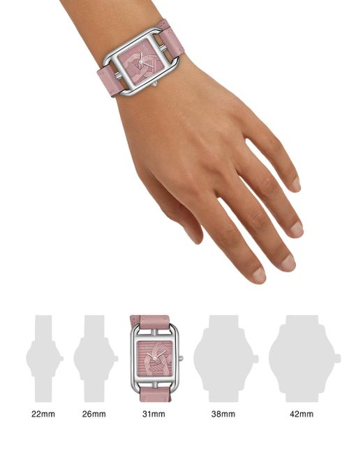 From the Cape Cod Collection. Crafted of stainless steel, this timepiece from HERMÈS is designed with a signature wraparound leather strap and an etched Anchor Chain motif at the dial. Swiss quartz movement Stainless steel bezel Anti-glare sapphire crystal Stainless steel crown Stamped dial coated with a glycine-tinted lacquer Stainless steel case Leather strap Pin-buckle Made in Switzerland FEATURES Water-resistant to 3 ATM SIZE Rectangular case: about 23mm W (0.91") x 31mm L (1.22"). Fine Jewelry - Fine Watches > Hermès > Saks Fifth Avenue > Barneys. HERMÈS. Color: Steel.