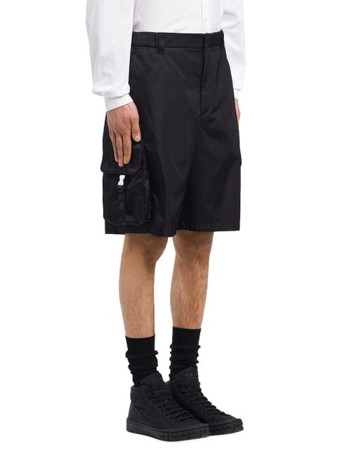 These Bermuda with maxi side pockets accented with a nylon strap and side-release buckle have a sleek, practical, functional design. The garment decorated with the emblematic enameled metal triangle logo is made of Re-Nylon, a regenerated yarn produced from recycled, purified plastic trash collected in the ocean. Elasticized waistband with drawstring Zipper fly with hidden hook Front angled slash pockets Zipper welt pockets on the back Enameled metal triangle logo on the side Flap pockets and buckle on the side Imported SIZE 55.0 cms/21.6 inches H. Lsd Rtw - Prada Rtw > Prada > Saks Fifth Avenue > Barneys. Prada. Color: Black. Size: 32.
