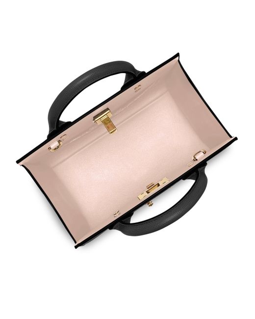 Rendered in grained calf leather, this top handle bag features classy goldtone hardware. Dual top handles Turnlock closure Interior open compartment Calf leather Lining: Lambskin Made in Italy SIZE 8.5"W x 7.5"H x 4.5"D ABOUT THE BRAND Italian designer Salvatore Ferragamo began his journey in 1927 in Italy with a vision of creating the world's most beautiful shoes. Since its inception, FERRAGAMO has expanded to include clothing, accessories and beauty under the creative direction of Maximilian Davis-who brings a minimalist-meets-maximalist aesthetic to the brand. Handbags - Ferragamo Handbags > Ferragamo > Saks Fifth Avenue > Barneys. FERRAGAMO. Color: Nero Bonbon.