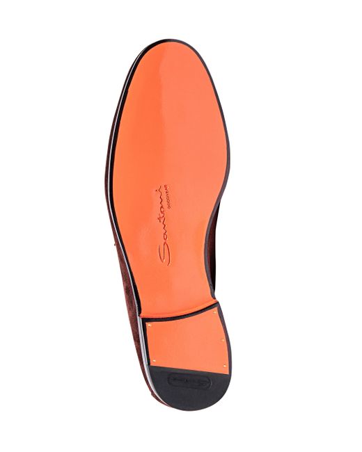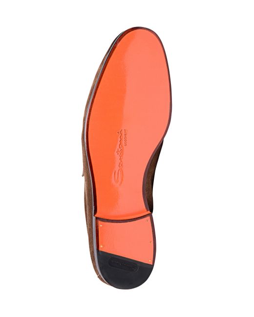 Santoni's Carlos penny loafers are crafted of suede in a regular fit with a round toe. The pair features a printed logo on the insole and raised apron stitching. Round toe Slips on Suede upper Leather/rubber sole Made in Italy. Men's Shoes - Mens Classic Footwear > Santoni > Saks Fifth Avenue > Barneys. Santoni. Color: Brown. Size: 6.5.