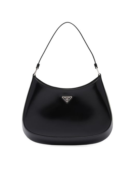The Prada Cleo bag with sophisticated allure reinterprets an iconic design of the brand from the 1990's. Sleek curved lines emphasized by the particular construction rounded on the bottom and sides give this hobo bag a soft, light look. Brushed leather, a modern and versatile material that is distinctive in Prada collections, is ideal for creating always new combinations and contrasts. The enamel triangle logo decorates the silhouette. Brushed leather Leather handle Metal hardware Logo on enameled metal triangle at the front Magnet closure Prada logo nylon lining with patch pocket Imported SIZE 10.6'' W x 8.6'' H x 2'' L. Lsd Handbags - Prada Handbags Access > Prada > Saks Fifth Avenue > Barneys. Prada. Color: Black.